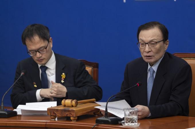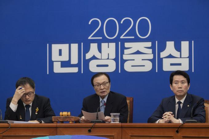 더불어민주당 이해찬 대표(가운데)가 19일 오전 서울 여의도 국회 당대표회의실에서 열린 최고위원회의에 참석해 발언하고 있다.