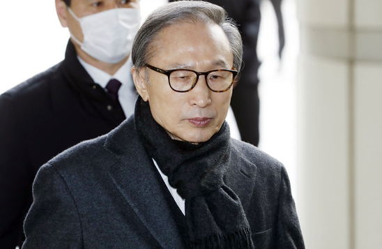 ▲ 이명박 전 대통령이 19일 오후 서울 서초구 서울고등법원에서 열린 횡령과 뇌물 등 혐의 관련 항소심 선고 공판에 출석하고 있다. [뉴시스]