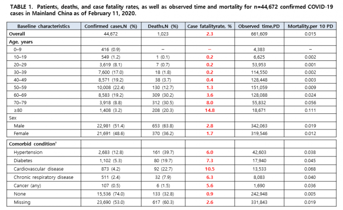 중국 질병통제예방센터(CCDC, Chinese Centers for Disease Control and Prevention)는 최근 'COVID-19'에 대한 대규모 조사 결과를 중국 역학저널(Chinese Journal of Epidemiology)을 통해 공개했다.