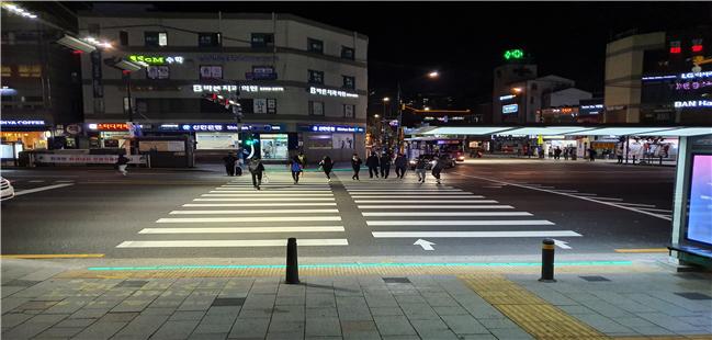 밤에는 집중 조명이 횡단보도 전체를 환하게 밝혀주고, 빨간 불일 때 실수로 보도 경계선을 넘어가면 "위험하오니 안전선 뒤로 물러나 주세요"라는 안내음성이 나온다.
