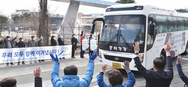 국방어학원 정문 앞에서는 미래이천시민연대와 장호원읍비상대책위원회 등 이천지역 주민들이 플래카드와 피켓을 들고 배웅했으며, 버스에 탄 3차 귀국자 일부는 주민들을 향해 손을 흔들기도 했다.