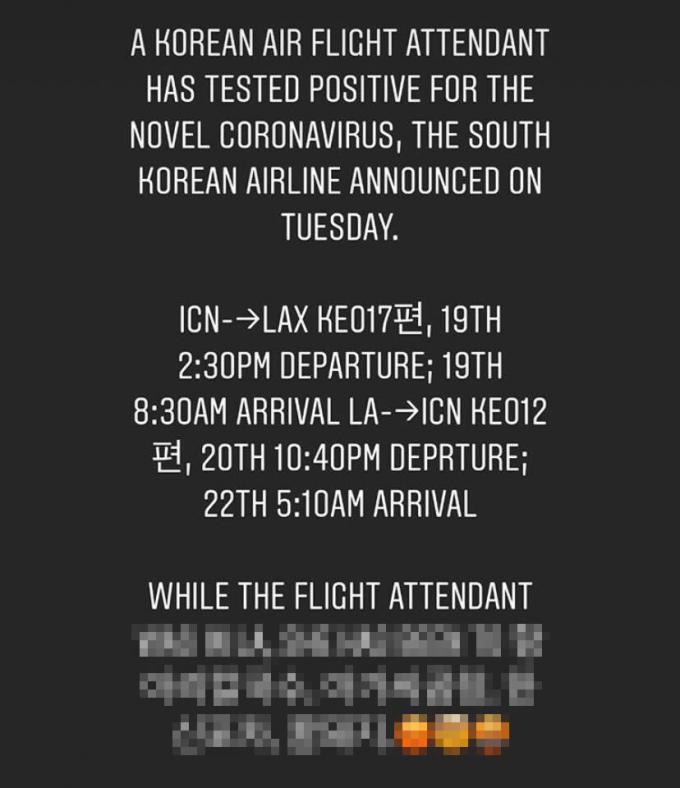 심지어 본사에도 LA의 한인들이 카톡 메시지 등을 보내며 해당 승무원의 동선을 한국에서 발표했느냐, 이런 내용이 사실이냐는 등의 문의가 답지하기도 했다.