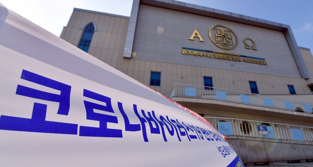 ▲ 지난달 27일 오후 광주 북구 신천지 베드로지성전 입구에 신종 코로나 바이러스 관련 현수막이 걸려있다. [뉴시스]