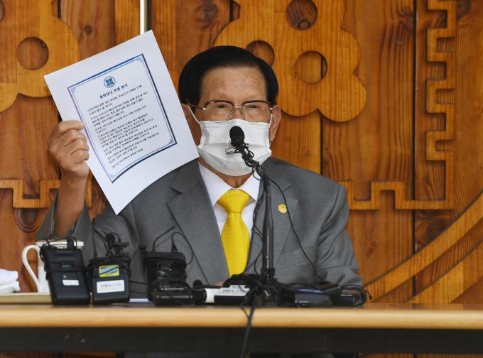 이 총회장은 2일 오후 3시 10분쯤 경기 가평 평화의 궁전에서 코로나19 확산에 대한 기자회견을 열고 이 같은 내용의 입장문을 발표했다. 그는 또 "(지금은)누구 잘못을 따질 때가 아니다"라며 "내 집안사람, 교회사람이다 이 선을 넘어서 국민을 생각한다면 모든 사람이 협조해서 막아야 한다"고 말했다.