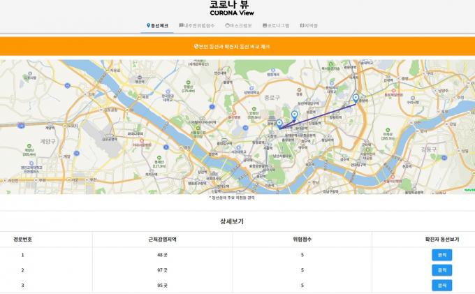 코로나 동선 분석 웹사이트 '코로나뷰(coronaview)'다.