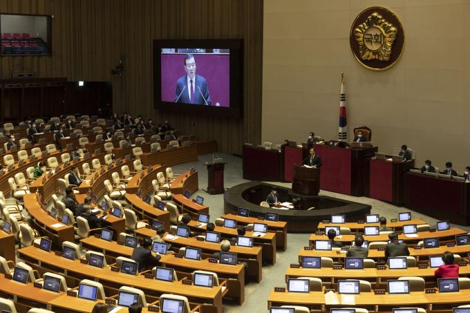미래통합당 홍문표 의원이 4일 오후 서울 여의도 국회에서 열린 제376회 국회(임시회) 제7차 본회의 대정부질문에 참석해 모두발언을 하고 있다.