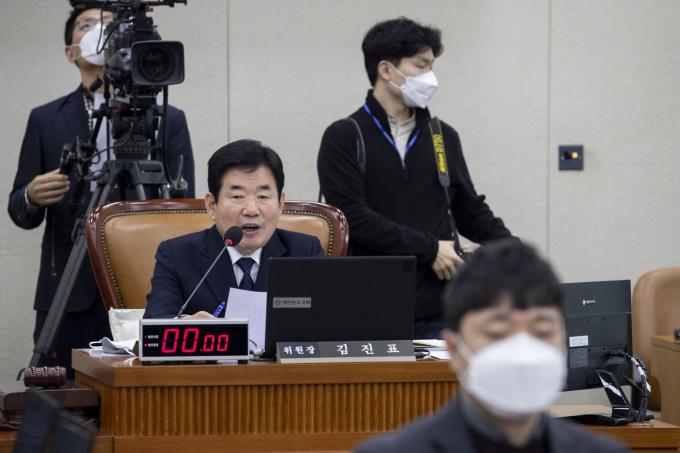 더불어민주당 소속 김진표 국회 코로나19 대책특별위원회 위원장이 5일 오전 서울 여의도 국회에서 열린 코로나19 특위 전체회의를 주재하고 있다.