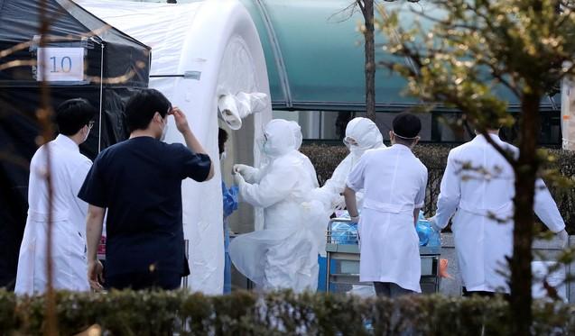 ▲ 6일 오전 간호사, 간호조무사, 입원 환자 등 8명이 '코로나19' 확진 판정을 받은 경기 성남 분당제생병원 선별진료소에서 의료진들이 검체 채취를 위해 준비하고 있다. [뉴시스]