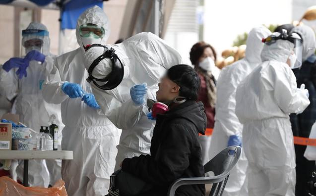 ▲한 시민이 10일 오후 건물 콜센터 근무자가 '코로나19' 확진자로 확인돼 폐쇄된 서울 구로구 코리아빌딩에 설치된 선별진료소에서 검사를 받고 있다. [뉴시스]