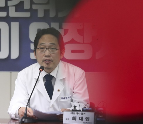 ▲ 최대집 대한의사협회장이 지난달 18일 서울 용산구 대한의사협회 용산임시회관 회의실에서 코로나19 관련 긴급 기자회견을 하고 있다. [뉴시스]