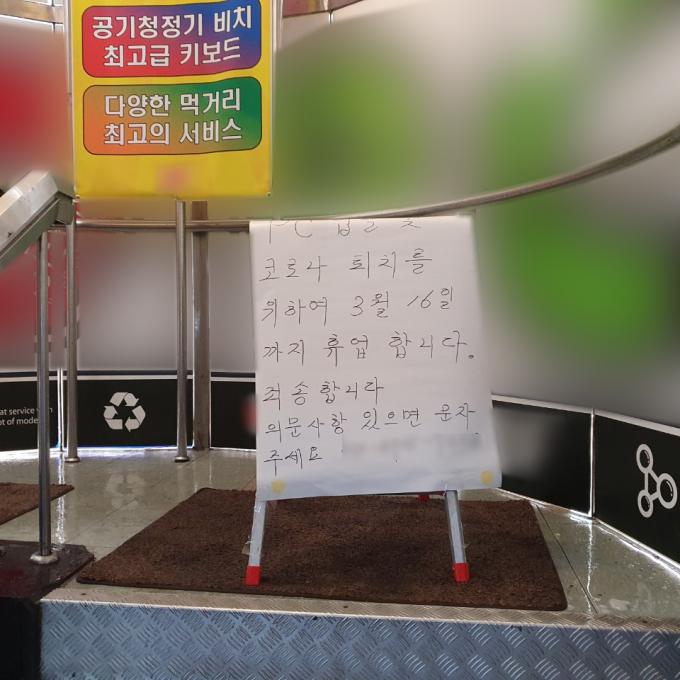 A 피시방은 오는 16일까지 방역을 위해 문을 닫았다. 손님의 발걸음이 뚝 끊겼을뿐더러 확진자가 2명 발생해 사람들의 따가운 시선을 견디기 힘들었기 때문이다.