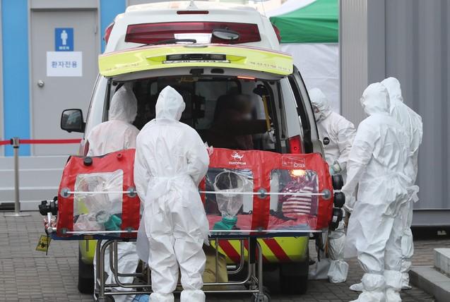 ▲ '코로나19' 중증환자가 지난 8일 오후 서울시의 감염병 전담병원인 서울 양천구 서남병원으로 이송되고 있다. [뉴시스]