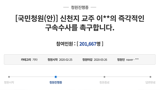 지난달 25일에 올라온 청원은 17일 오전 9시 30분 기준으로 20만907명의 동의를 얻어 '한 달 내 20만 명 이상 참여'라는 청와대 공식 답변요건을 채웠다.