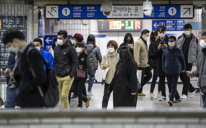 ▲ 지난 11일 오후 서울 구로구 서울지하철 신도림역에서 마스크를 쓴 시민들이 발걸음을 옮기고 있다. [정병혁 기자]