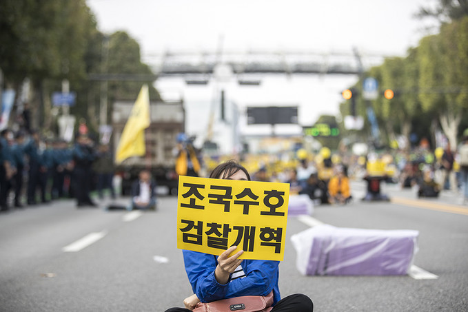 ▲ 지난해 10월 5일 오후 서울 서초구 대검찰청 앞에서 열린 검찰개혁, 공수처 설치, 조국 수호, 제8차 사법적폐 청산을 위한 검찰개혁 촛불문화제에 참석한 시민들이 피켓을 들고 있다.[정병혁 기자]