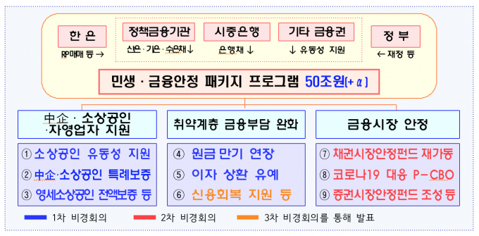 매출감소로 당장 현금이 부족한 취약계층에게 대출 만기연장과 이자상환 유예를 전 금융권으로 확대 적용하고 연체된 대출에 대한 신용회복 지원도 강화할 방침이다.