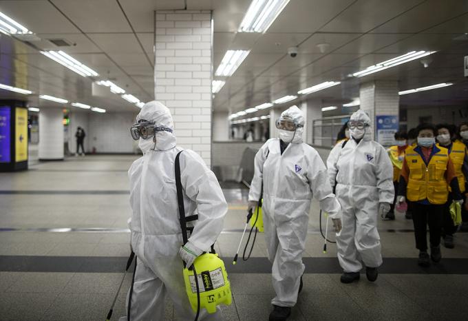 ▲ 지난 11일 오전 서울 구로구 서울지하철 신도림역에서 방역 관계자들이 코로나19 확산 방지를 위한 방역 작업을 하고 있다. [정병혁 기자]