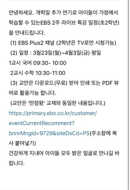 경기도 성남의 C초등학교에서는 가정통신문을 통해 'EBS 2주 라이브 특강 일정'을 안내해 EBS 수업과 연계를 돕는 데 그쳤다.