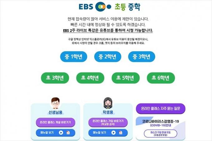한편 온라인 강의에 대한 수요는 높은 상황이다. 23일 오전 9시부터 다음달 3일까지 신학기 진도에 맞춰 학교 시간표와 동일한 시간에 초중고 온라인 특강을 진행하는 오전 EBS 초중고 온라인 특강에는 23일 학생들이 몰리며 접속 장애가 발생했다.