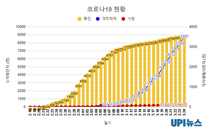 사망자는 9명 증가해 모두 120명…격리 해제도 341명 추가