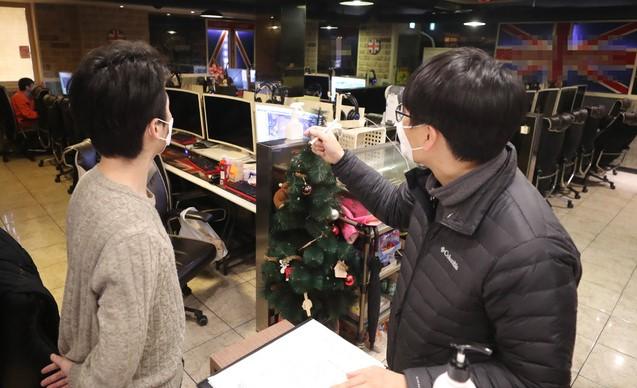 ▲서울시와 영등포구청 관계자들이 지난 13일 오후 '코로나19' 확산과 관련해 다중이용업소에 대한 조사에 나서 서울 영등포구 대림동의 한 PC방에서 방역상황을 점검하고 있다. [뉴시스]