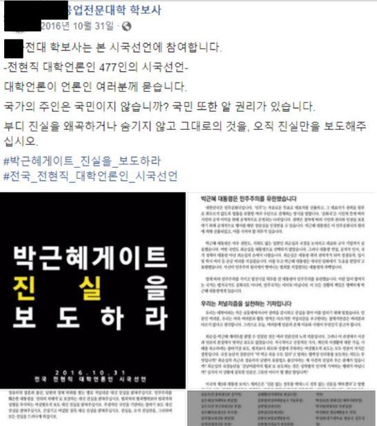 보수 네티즌 "박근혜 국정농단 당시 시국선언 참여해"