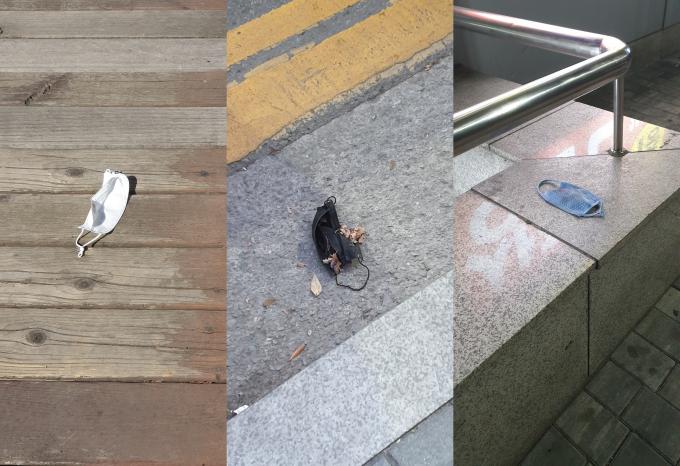 버스 정류장과 지하철역, 술집 등 시민들이 주로 이동하는 지역에서도 폐기된 마스크를 쉽게 볼 수 있다.