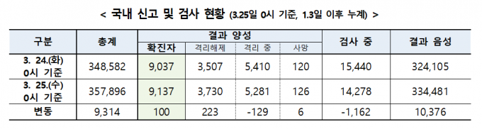 중앙방역대책본부는 25일 0시 기준 코로나19 확진자가 전날 0시보다 100명 증가했다고 밝혔다.