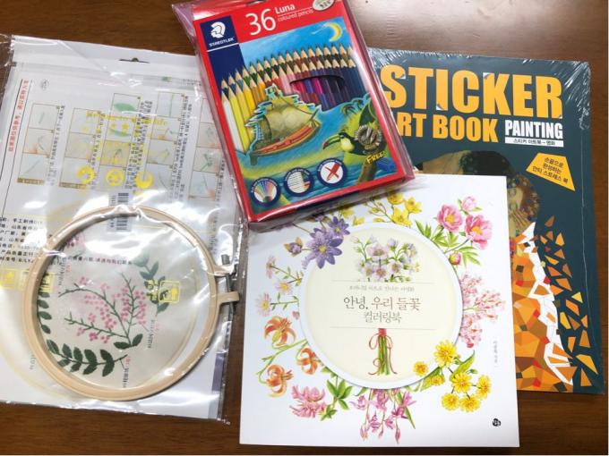 A 씨는 "집에서 할 취미 생활을 다양하게 찾아봤다"면서 "컬러링북과 스티커 아트북(명화를 스티커로 붙여 완성하는 책)이 손 운동도 되고 시간이 잘 간다"고 말했다.