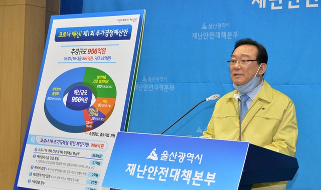 울주군은 지난 23일 전국에서 처음으로 222억2560만 원을 긴급편성, 군민 1인당 10만 원씩 긴급재난기금으로 지원하기로 했다. 그러자 그동안 긴급재난생활비 지급에 신중한 태도를 보이던 울산시도 결국 시행으로 정책을 변경했다.