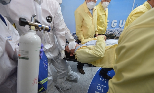 권 시장은 지난달 18일 대구에서 첫 확진자가 나온 이후 21일부터 35일째 시장 집무실에 비치한 야전침대에서 생활해 왔다. 권 시장은 참모진의 귀가 권유에도 자리를 지킨 것으로 알려졌다.