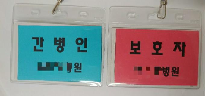 ▲ 코로나19확산으로 보건복지부는 요양병원에 준수사항을 전달했다. 관련 내용에는 외부인 출입통제가 포함됐다.  사진은 최근 코로나19 확산으로 1명만 병문안이 가능케 한 한 병원의 보호자증 모습. [김지원 기자]