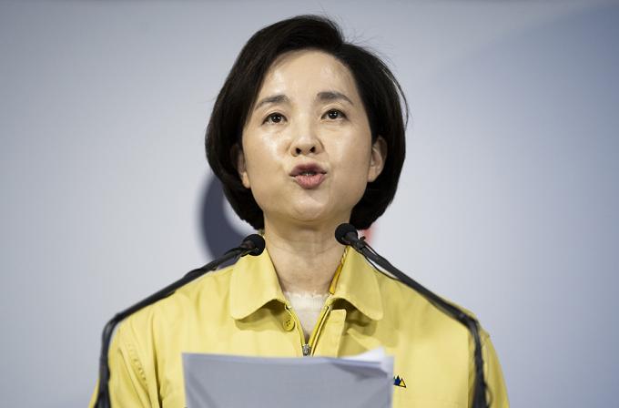 ▲ 유은혜 사회부총리 겸 교육부 장관이 지난 17일 오후 서울 종로구 정부서울청사에 코로나19 확산 방지를 위한 2020학년도 신학기 개학 연기 및 대응계획을 발표하고 있다.[정병혁 기자]