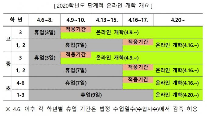 "4월 9일부터 단계적 온라인 개학"