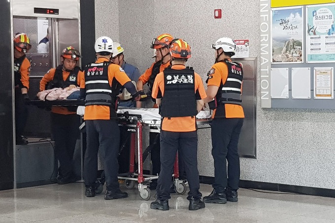 ▲ 서산시가 2019년 승강기 사고대응 합동훈련 및 안전교육을 실시하는 모습.