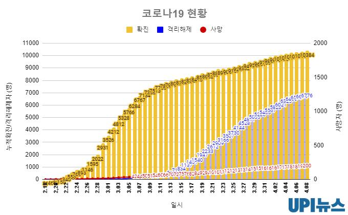 사망자는 8명 늘어 총 200명…평균 치명률 1.93%