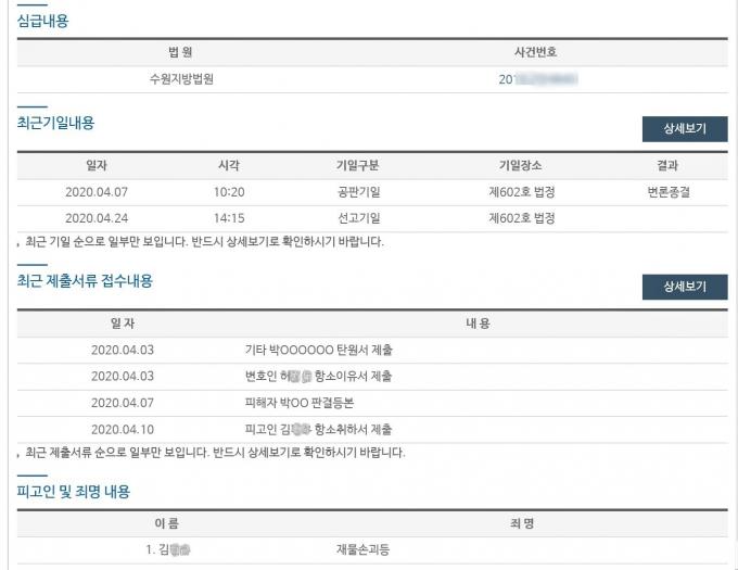 김 씨는 재판 3일 후인 지난 10일 항소를 취하했다. 박 씨는 "항소를 취하한 정확한 이유를 관할부서에 확인하려고 했지만 통화가 안됐다"며 "김 씨가 법정에서 한 거짓말 때문에 가중처벌될 것이 두려워 취하한 것 같다"라고 짐작을 밝혔다.