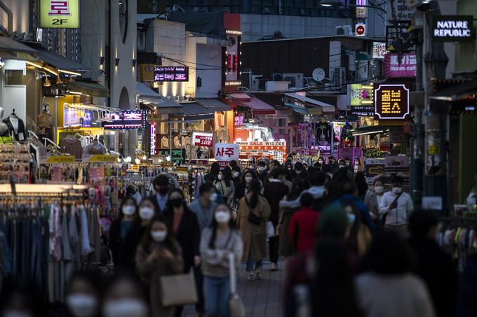 ▲ 코로나19의 확산이 계속되고 있는 10일 오후 서울 마포구 홍대거리를 찾은 시민들이 마스크를 쓴 채 발걸음을 옮기고 있다. 정부는 지난 3월 22일부터 시행한 고강도 물리적 거리 두기'를 2주 연장했다.[정병혁 기자]
