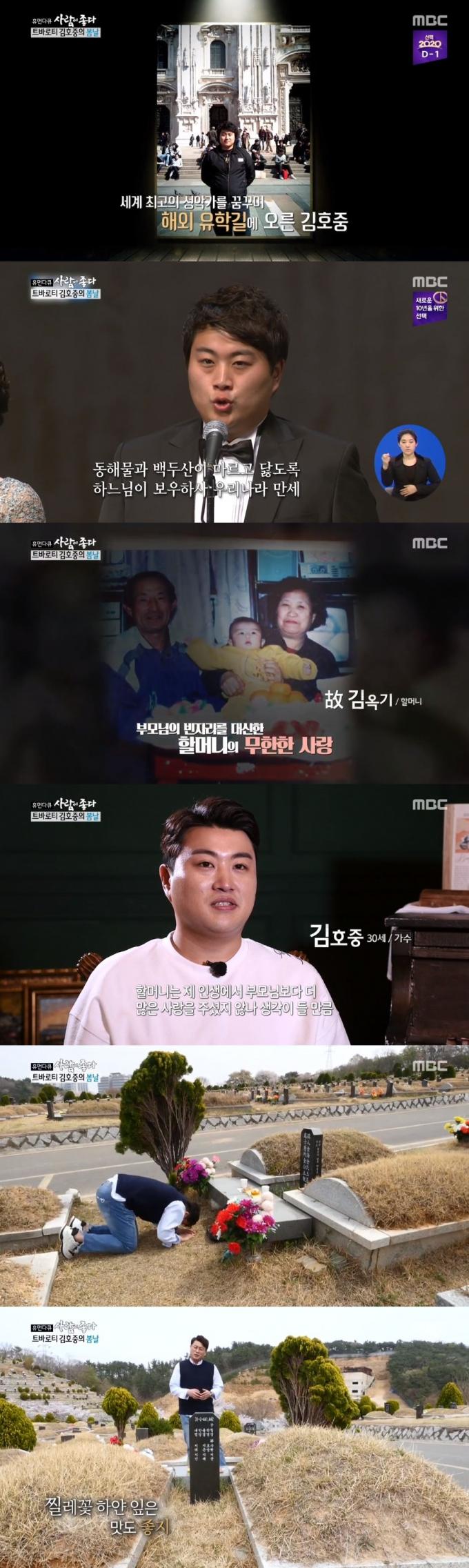 14일 밤 방송된 MBC 교양프로그램 '휴먼다큐 사람이 좋다'는 '트바로티 김호중의 봄날' 편으로 꾸며져 TV조선 '미스터트롯'에 출연해 이름을 알린 김호중의 일상이 그려졌다.