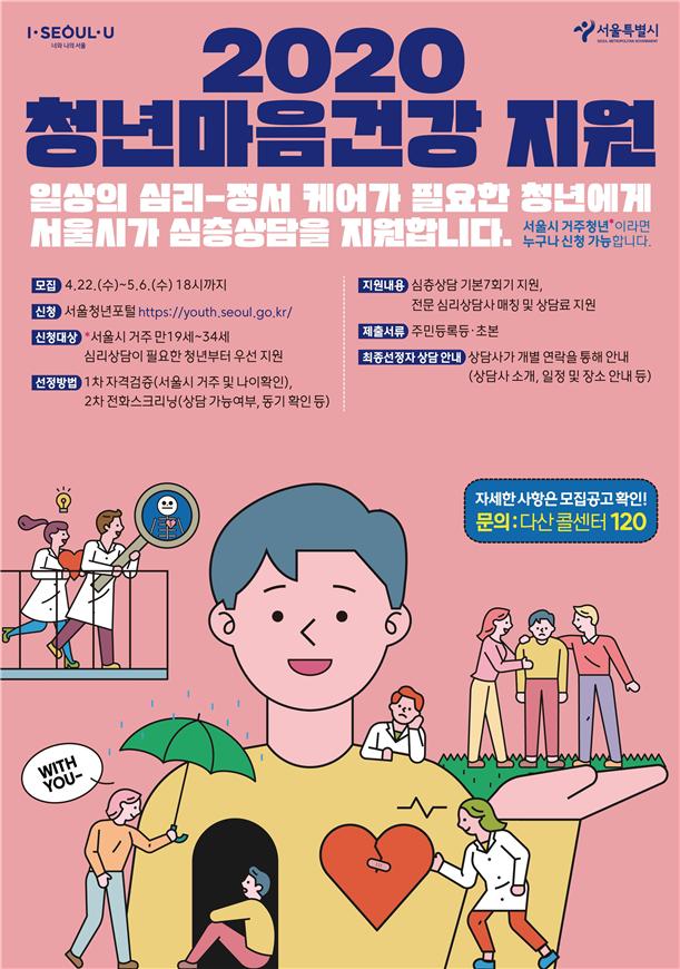 신청 자격은 공고일 기준 주민등록상 서울에 거주하는 만 19~34세 청년이다. 신청자는 주민등록등본 또는 초본 1부(스캔본)와 본인의 마음건강 상황을 체크해 내면된다.