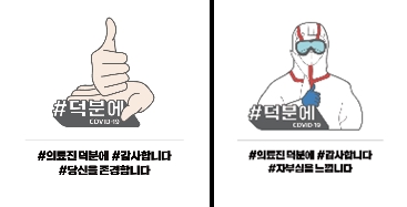 ▲ (왼쪽부터) 국민용, 의료진용 '덕분에 챌린지' 캠페인 이미지. [중앙재난안전대책본부 제공]