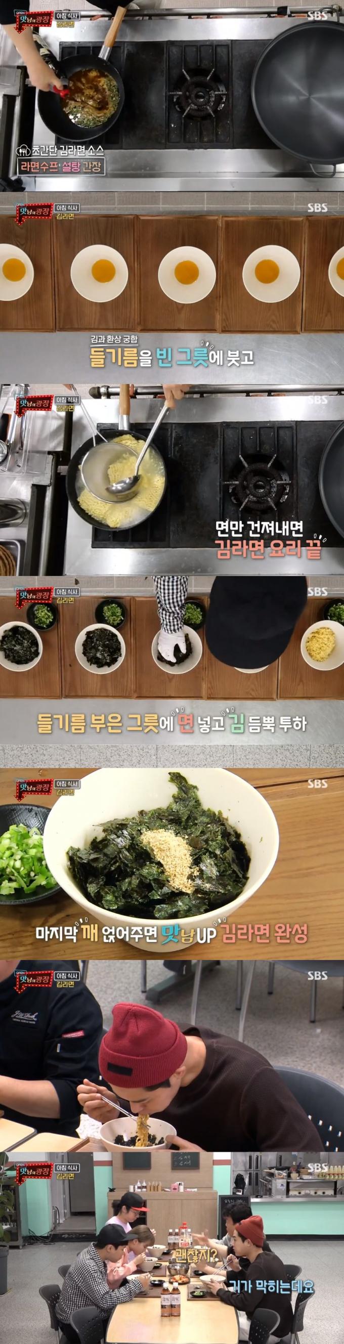 ▲ 16일 방송된 SBS '맛남의 광장'에서 출연진이 김라면을 만들어 식사하는 모습이 그려지고 있다. [SBS '맛남의 광장' 캡처]