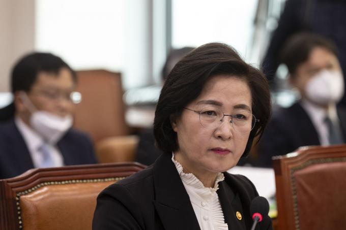 ▲ 추미애 법무부 장관의 정책보좌관으로 근무 중인 현직 검사가 과거 사건 관계자로부터 부정한 청탁을 받았다는 의혹이 제기된 가운데 당사자가 "사실이 아니다"며 강하게 반박했다. 사진은 추미애 장관. [문재원 기자]