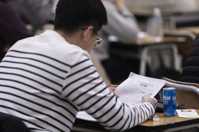 ▲ 2020 대학수학능력시험일인 지난 2019년 14일 오전 서울 종로구 경복고등학교 시험장에 입실을 마친 수험생들이 자리에 앉아 있다. [문재원 기자]