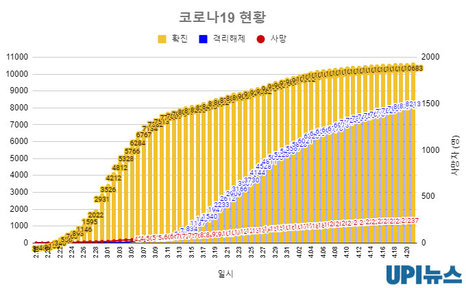 질병관리본부 중앙방역대책본부는 21일 0시 기준 코로나19 확진자가 1만683명이라고 발표했다.