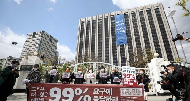 "침해된 학생 권리 보장을 위해 법적 대응까지 염두" 코로나19 확산으로 대학들은 온라인을 통한 원격수업으로 강의를 진행하고 있다. 그러나 원격수업의 질이 떨어지거나 캠퍼스 시설을 이용할 수 없음에도 등록금은 그대로 받아 비판이 쏟아졌다. 이러한 가운데 대학생들이 교육당국에 등록금 반환을 요구하고 나섰다.