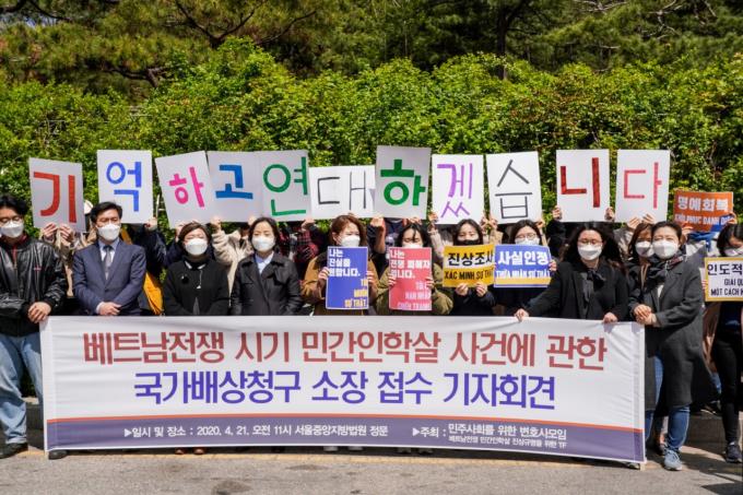 민주사회를 위한 변호사모임(민변) '베트남전쟁시기 한국군에 의한 민간인 학살 진상규명을 위한 TF'(민변 베트남 TF)는 지난 21일 오전 서울중앙지법 앞에서 기자회견을 열고 응우옌티탄(60·여)을 원고로 한 소장을 접수했다고 밝혔다. 응우옌티탄은 베트남 퐁니퐁넛마을에서 파월한 국군 청룡부대 제1대대 제1중대 소속 군인들에 의해 복부에 총격을 당하고 가족들 역시 같은 사건에서 살해당했다고 주장한다.