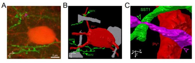 ▲ 소마토스타틴과 다른 신경세포간의 연결성을 나타낸 모식도. [KAIST 제공]