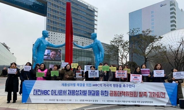 공동대책위는 "더 이상 '여성'이라는 이유만으로 일터에서 배제 당하는 차별의 역사는 끝내야한다"며 "인권위는 성차별적인 고용형태를 둔 대전MBC의 채용 관행을 '고용상 성차별'로 확실하게 짚어내는 결정을 내려야한다"고 촉구했다.