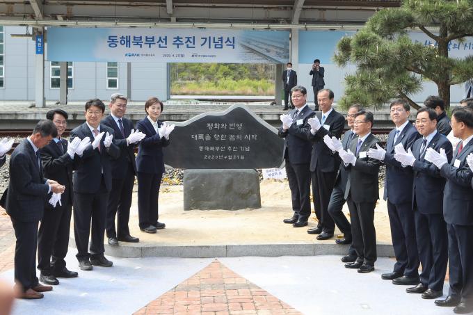 김연철 장관은 기념사에서 "동해북부선과 현재 공사 중인 동해중부선 그리고 이미 운행 중인 동해남부선이 연결되면 한반도 신경제구상의 중심축 중 하나인 환동해 경제권의 혈맥이 완성된다"며 "동해북부선 건설은 우리 경제에 활력을 불어넣을 새로운 '한반도 뉴딜' 사업"이라고 밝혔다.